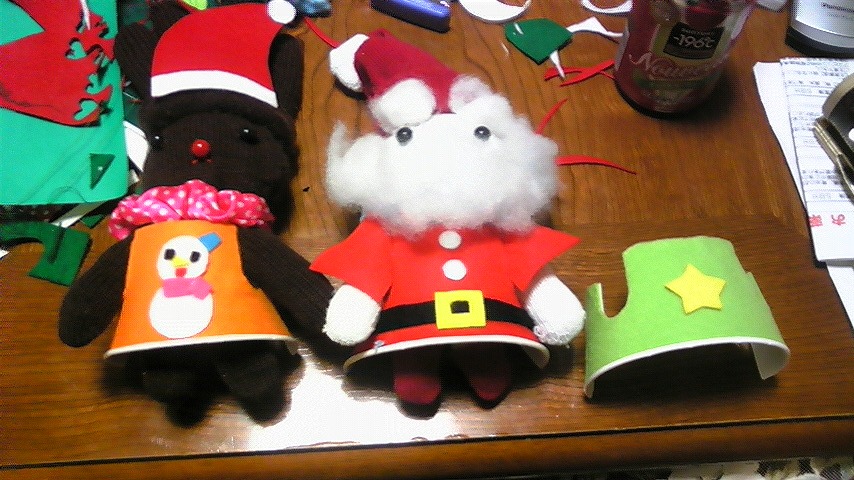クリスマスなので、サンタとトナカイです。